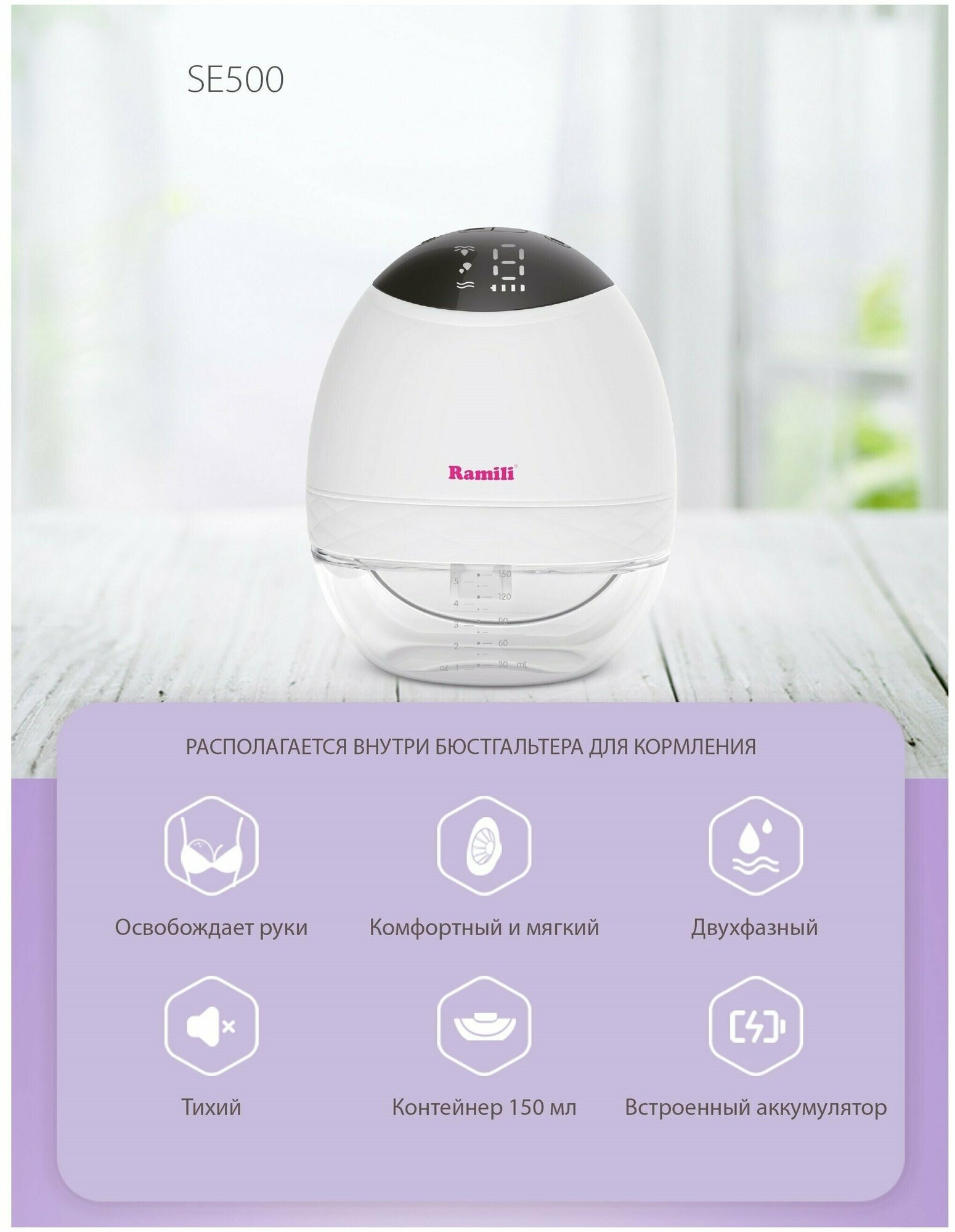 Двухфазный электрический молокоотсос Ramili SE150 с бутылочкой 240ML (SE150240ML)