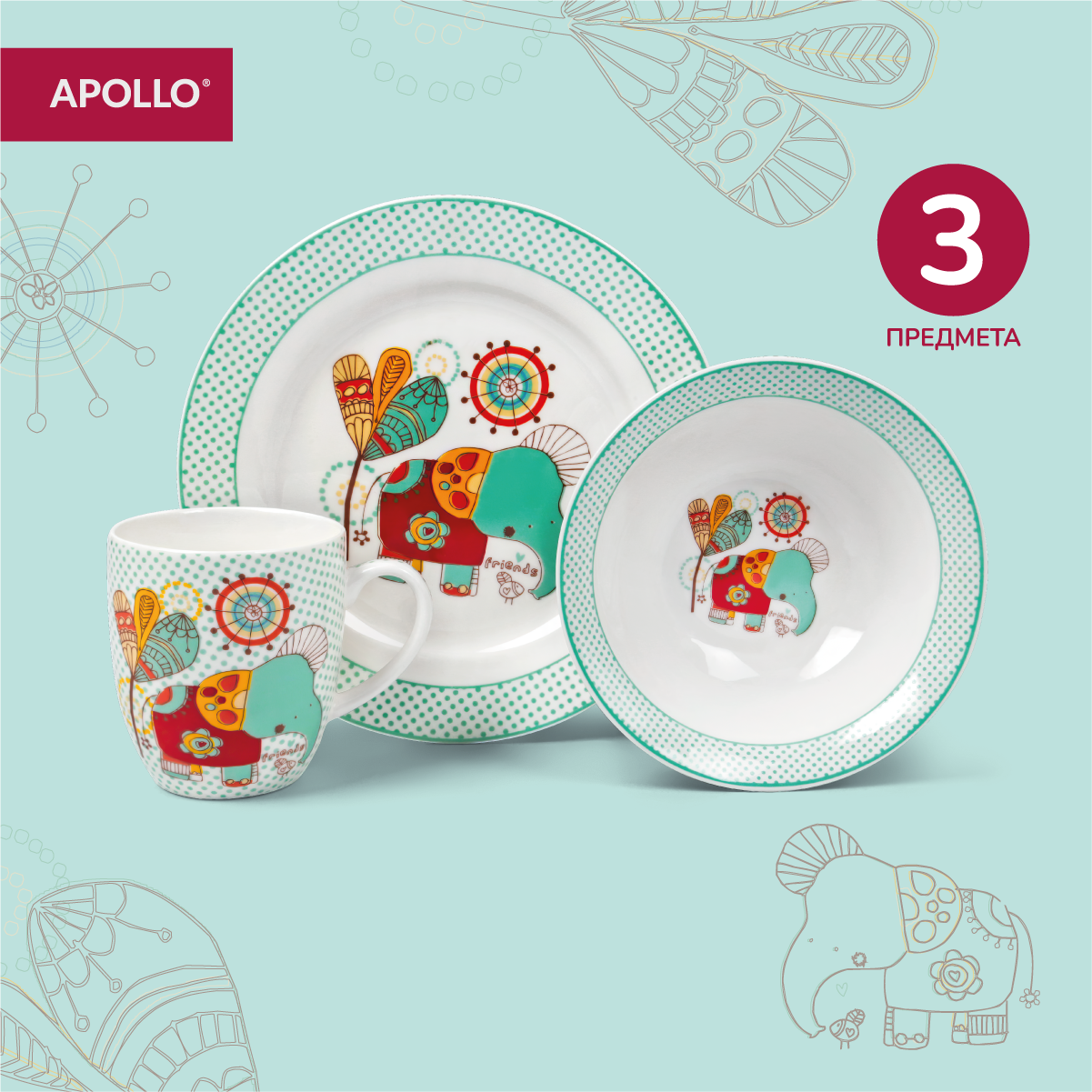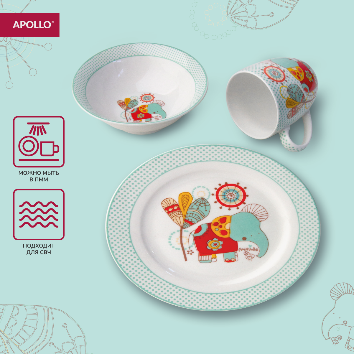 Набор детской посуды APOLLO "Doo-doo" 3 предмета из фарфора интересное: