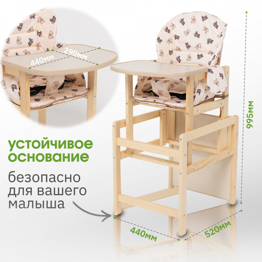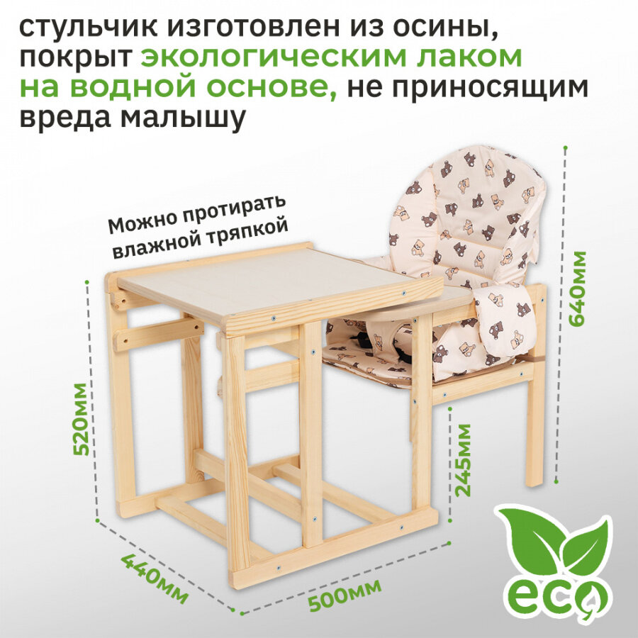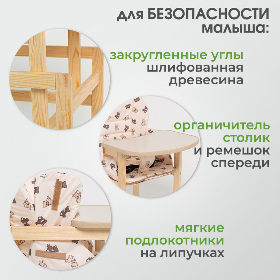 Стульчик детский Маяк для кормления со столом с чехлом Мишки бежевые / коричневые интересное: