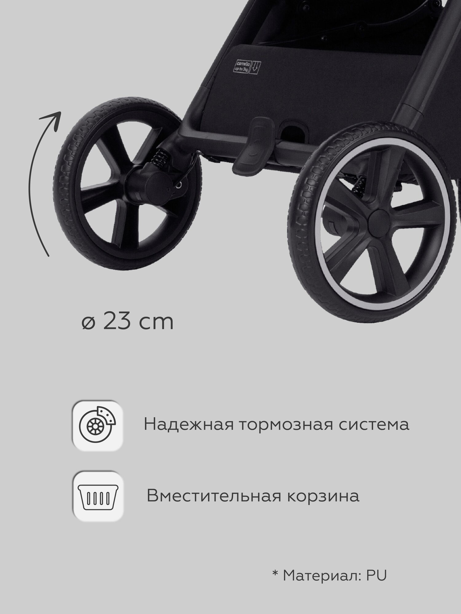 Прогулочная коляска Carrello Corsa CRL-5518, Frost Black, черный цвет, подходит для детей с 6 месяцев