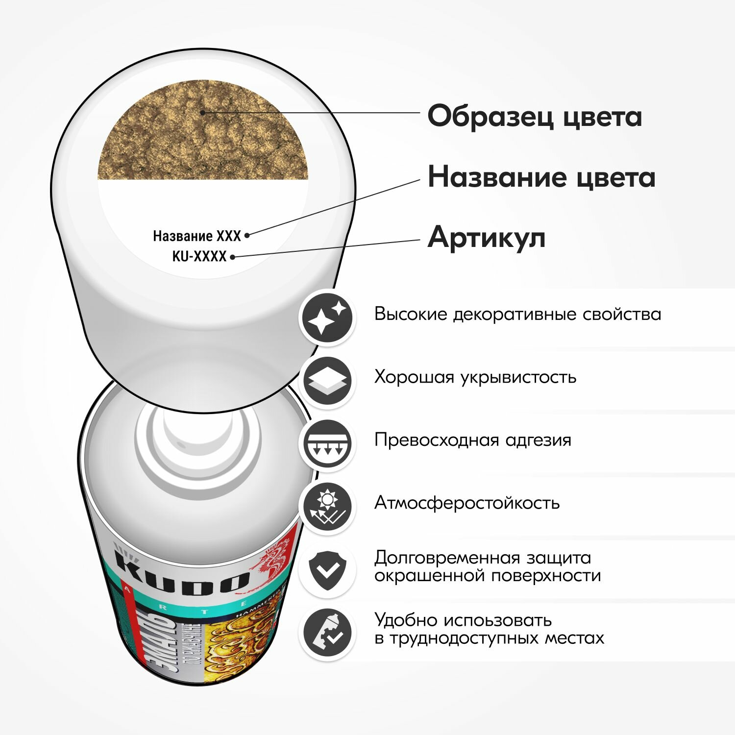 Краска-аэрозоль KUDO молотковая по ржавчине, серебристо-коричневая (520 мл), KU3008 KUDO KU-3008