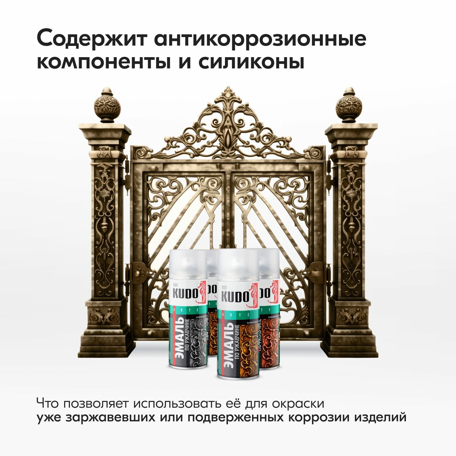 Эмаль молотковая по ржавчине (серебристая) KUDO 520мл. /кор.6шт./ KU-3001 KUDO KU-3001 | цена за 1 шт