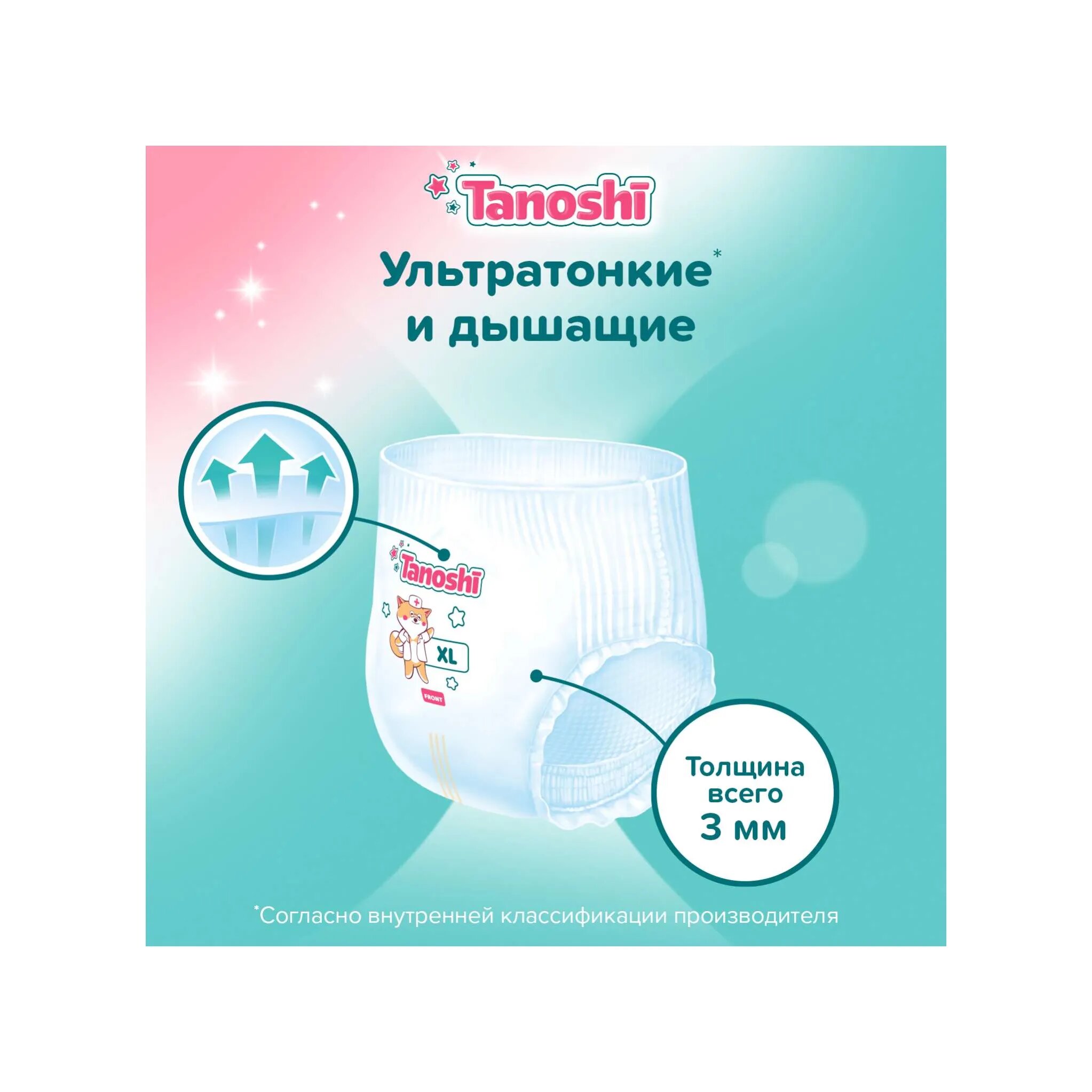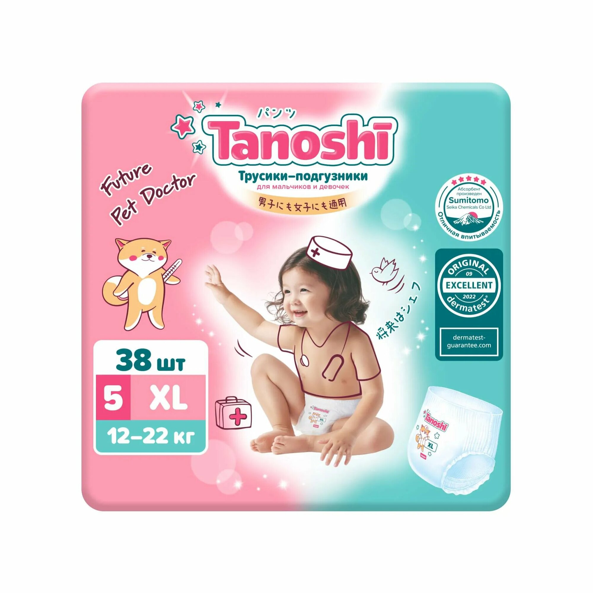 Подгузники-трусики Tanoshi размер XL/5 (12-22 кг), 38 шт, ультратонкие и дышащие