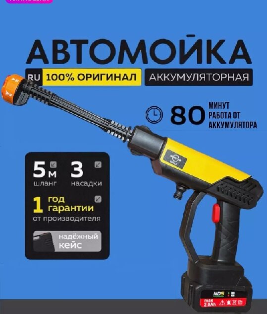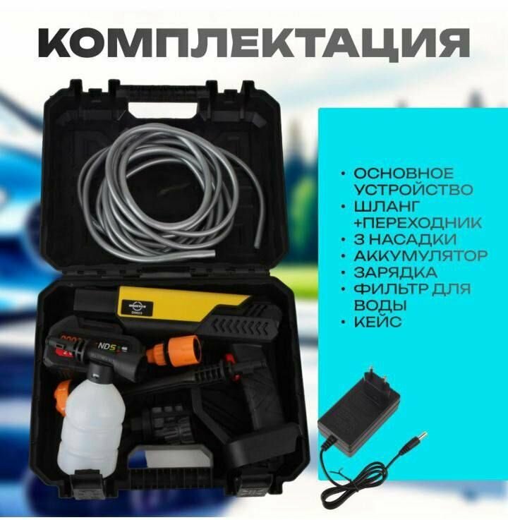 Минимойка аккумуляторная для автомобиля и сада MODENGO, 1 аккумулятор в комплекте, 5 метров шланга интересное:
