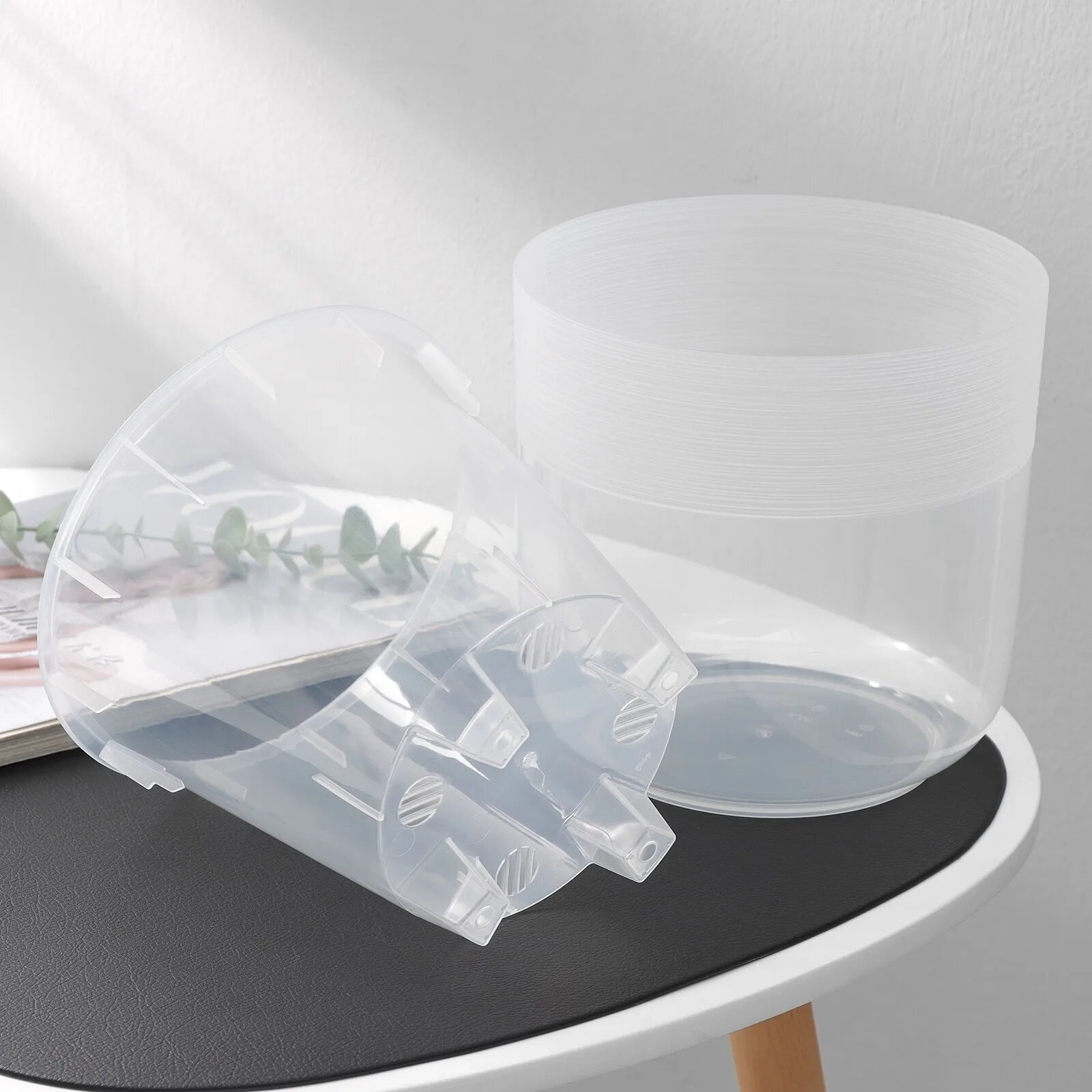 Горшок для цветов с автополивом 6 л, пластиковое кашпо с дренажной вставкой для выращивания комнатных растений средних размеров, цветочный горшок Альтернатива Линель, двойной, прозрачный