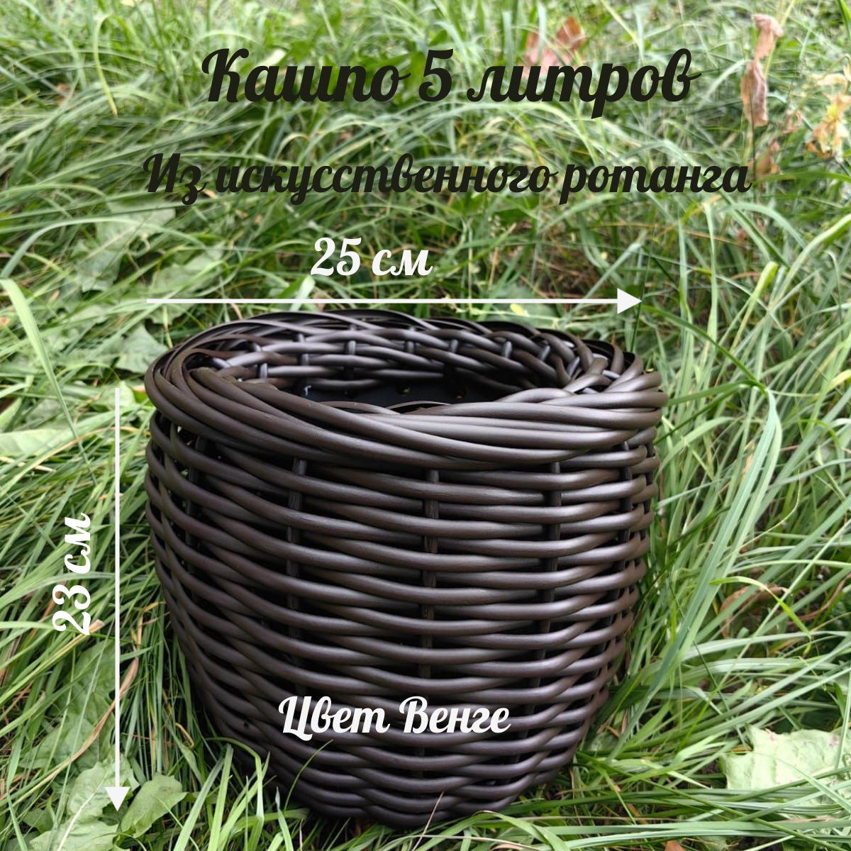Купить Кашпо из искусственного ротанга, 5 литров, венге, жгут