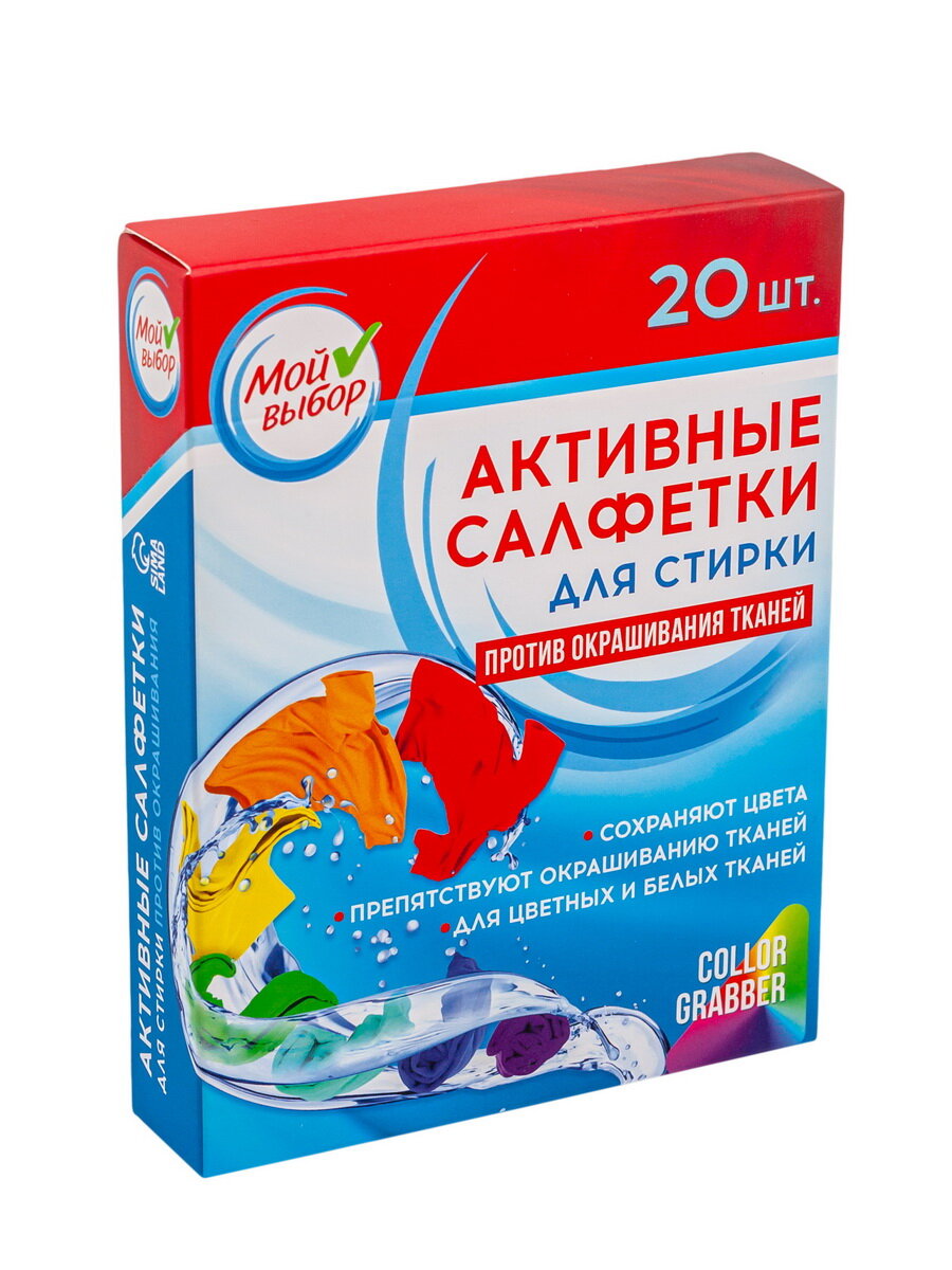 Активные салфетки для стирки "Мой выбор", для разноцветных тканей, 20 шт