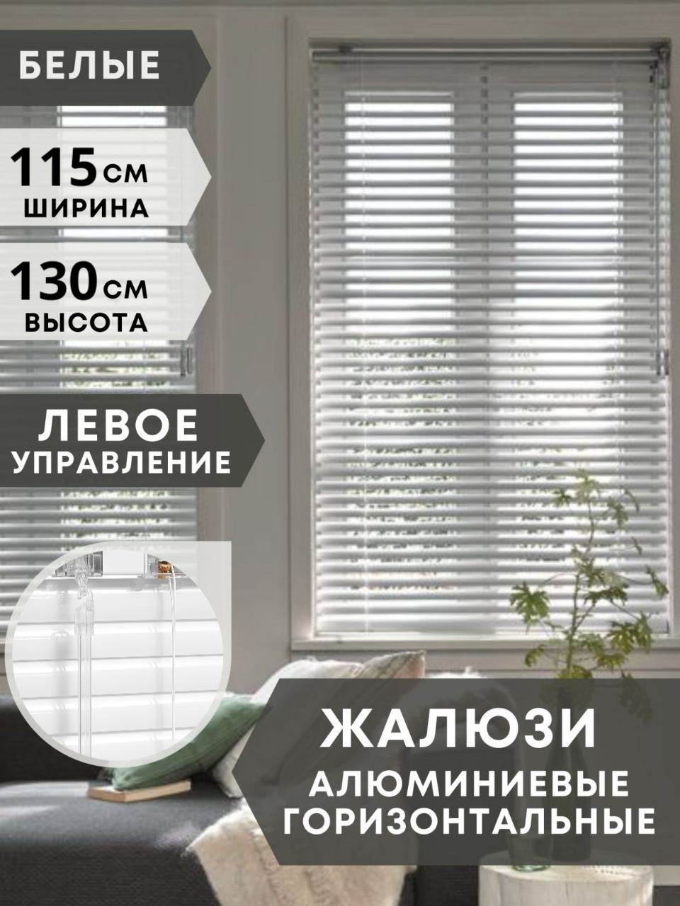 СохранитьЖалюзи на окна алюминиевые, 115 см на 130 см, управление левое интересное:
