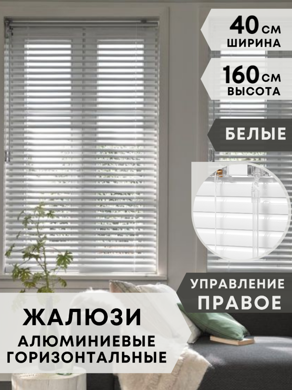 Купить Жалюзи на окна алюминиевые, 40 см на 160 см, управление правое