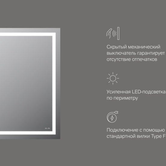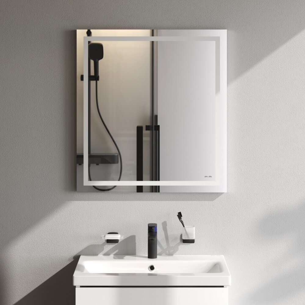 Зеркало настенное для ванной КерамаМане 70*100 см с холодной подсветкой 6000 К с сенсорной кнопкой