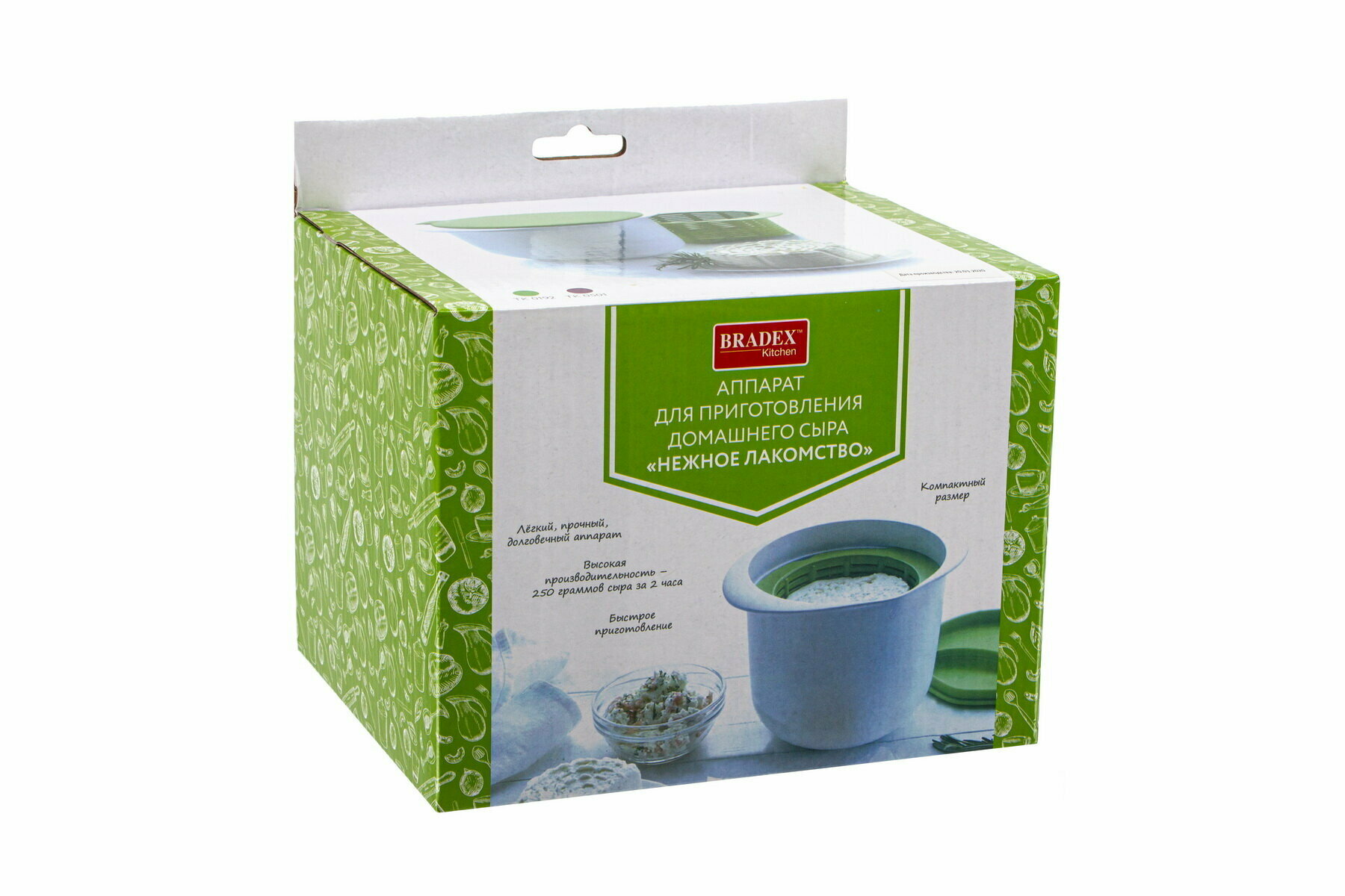Форма для приготовления домашнего творога и сыра Bradex TK 0192 в микроволновой печи, зеленый