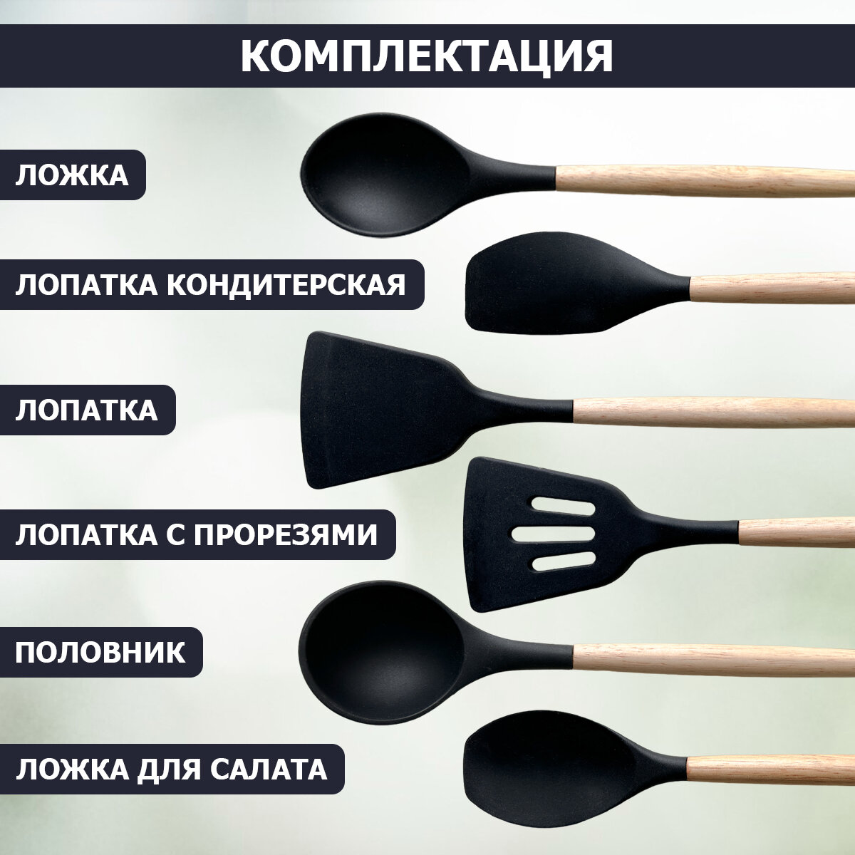 СохранитьНабор навесок Kitchen Set силикон (11 шт.) черный 32 см 11 шт. 12 см интересное: