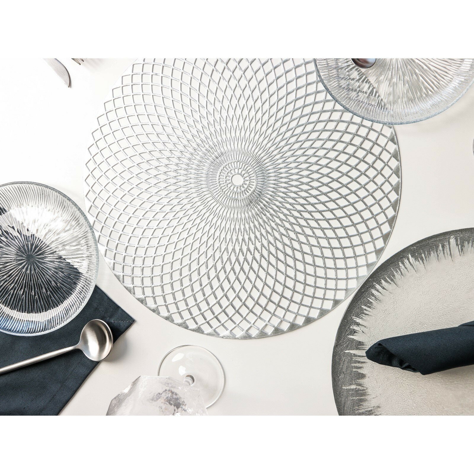 Салфетки сервировочные на стол Доляна Вира, 4 шт, d=38 см, цвет серебряный Доляна 6846310 .