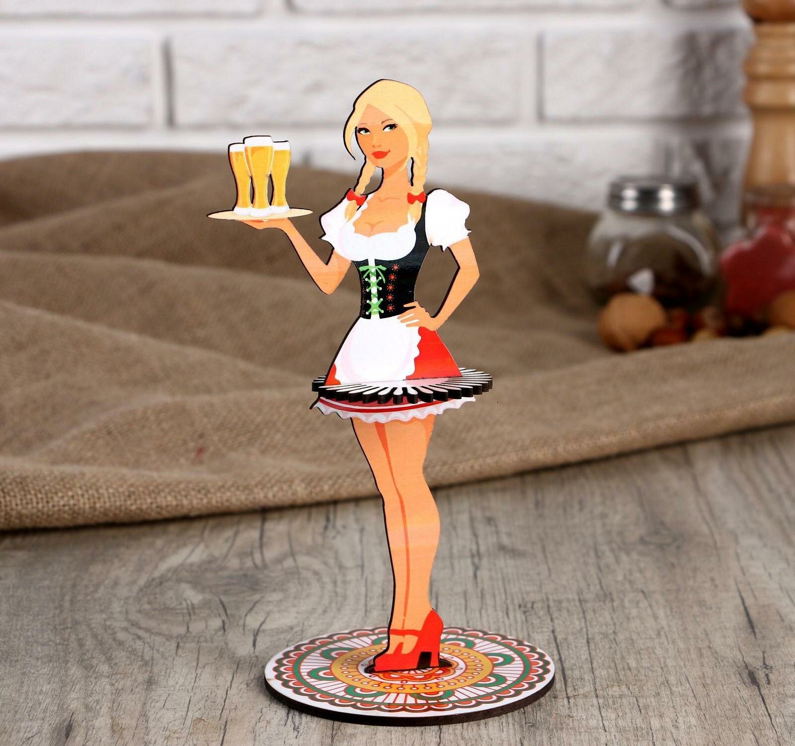 Салфетница деревянная «Девушка официантка с пивом с косами», цветная наклейка интересное: