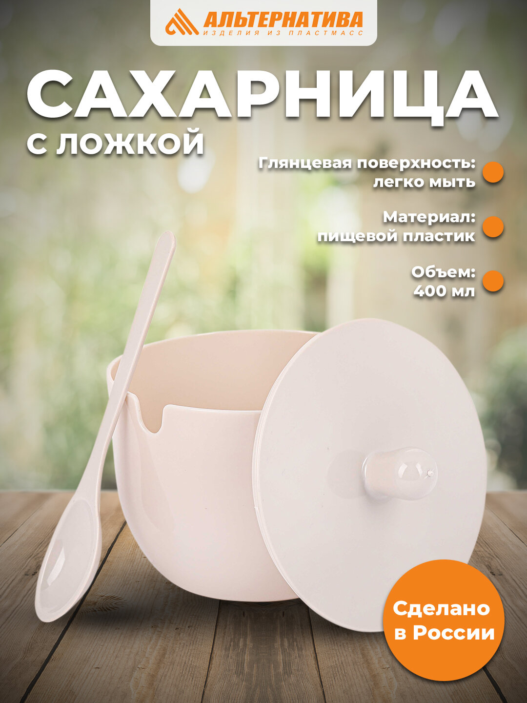 Сахарница с крышкой пластиковая, 350 мл, Альтернатива