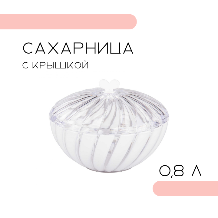 Сахарница пластиковая, емкость для сахара Альтернатива Шарм 0.35 л с крышкой, прозрачный