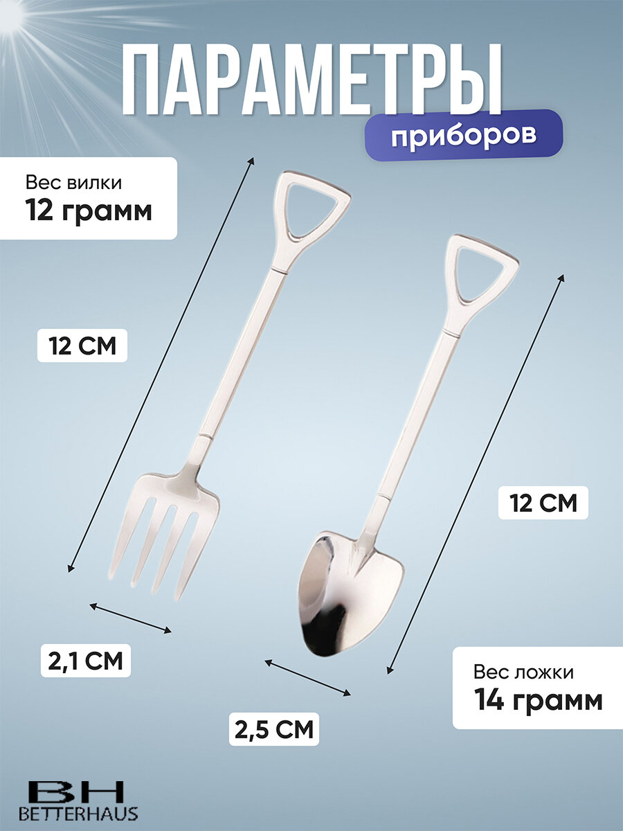 СохранитьНабор столовых сувенирных приборов BETTERHAUS "Лопаты и Вилы", нержавеющая сталь, посеребренные, 2 шт интересное: