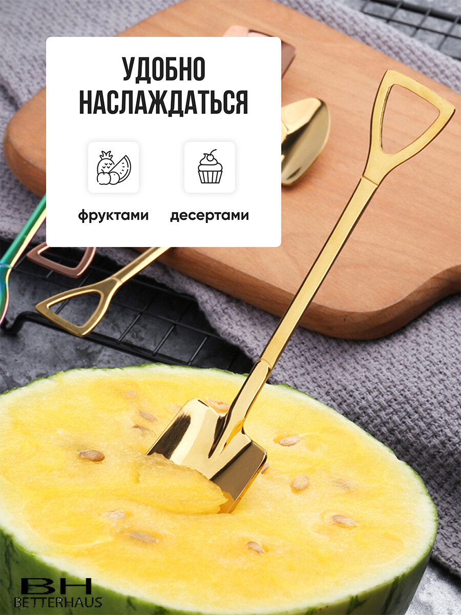 Набор сувенирных подарочных десертных чайных кофейных золотистых ложек в форме лопаты в футляре