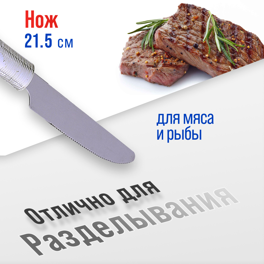 | В набор входит | столовые ложки - 6 шт, столовые вилки - 6 шт, столовые ножи - 6 шт, чайные ложки - 6 шт. |
