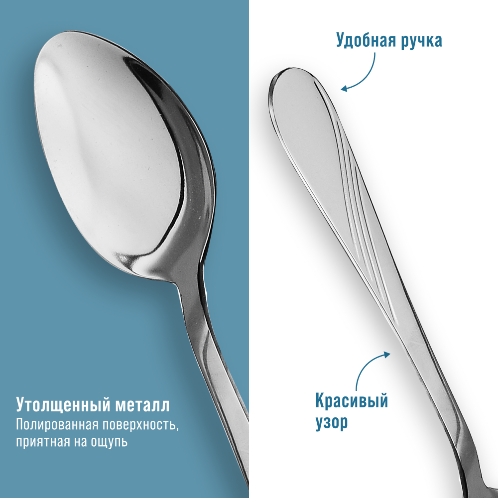 | В набор входит | столовые ложки - 6 шт, столовые вилки - 6 шт, столовые ножи - 6 шт, чайные ложки - 6 шт. |
