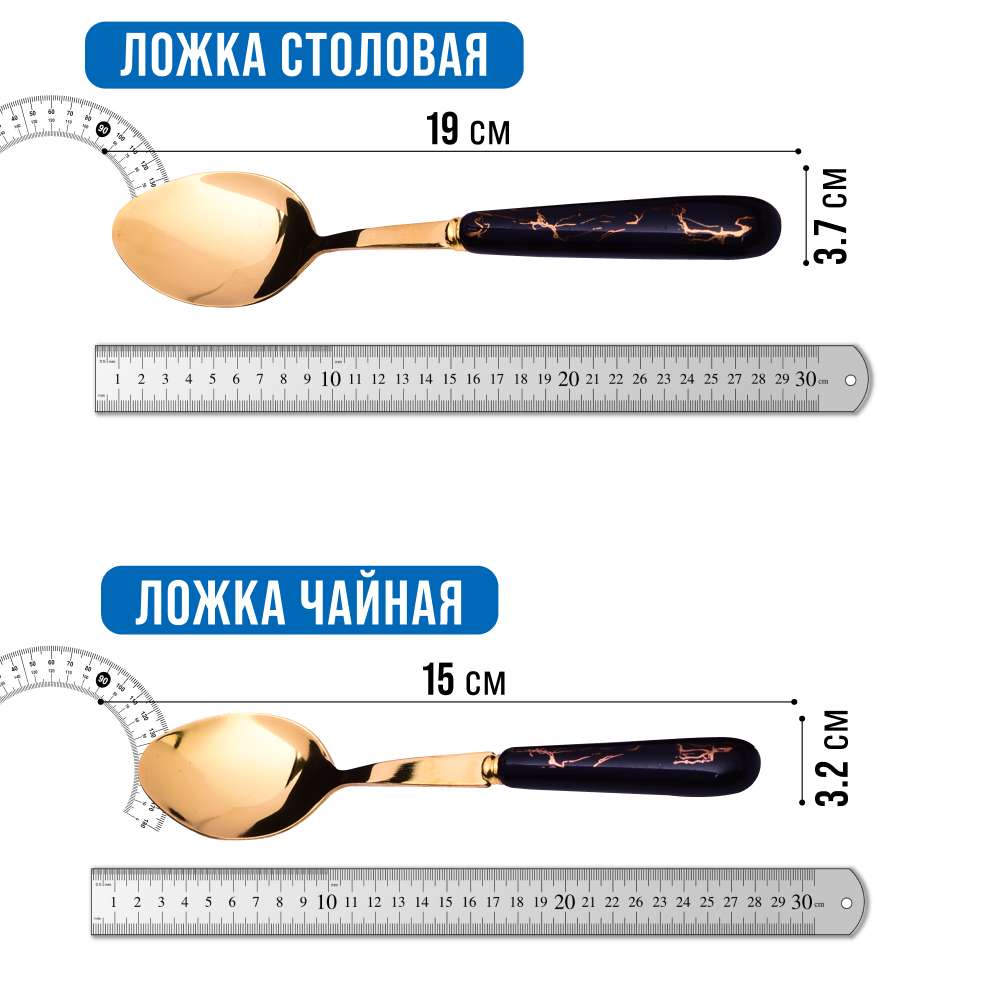 | В набор входит | столовые ложки - 6 шт, столовые вилки - 6 шт, столовые ножи - 6 шт, чайные ложки - 6 шт. |