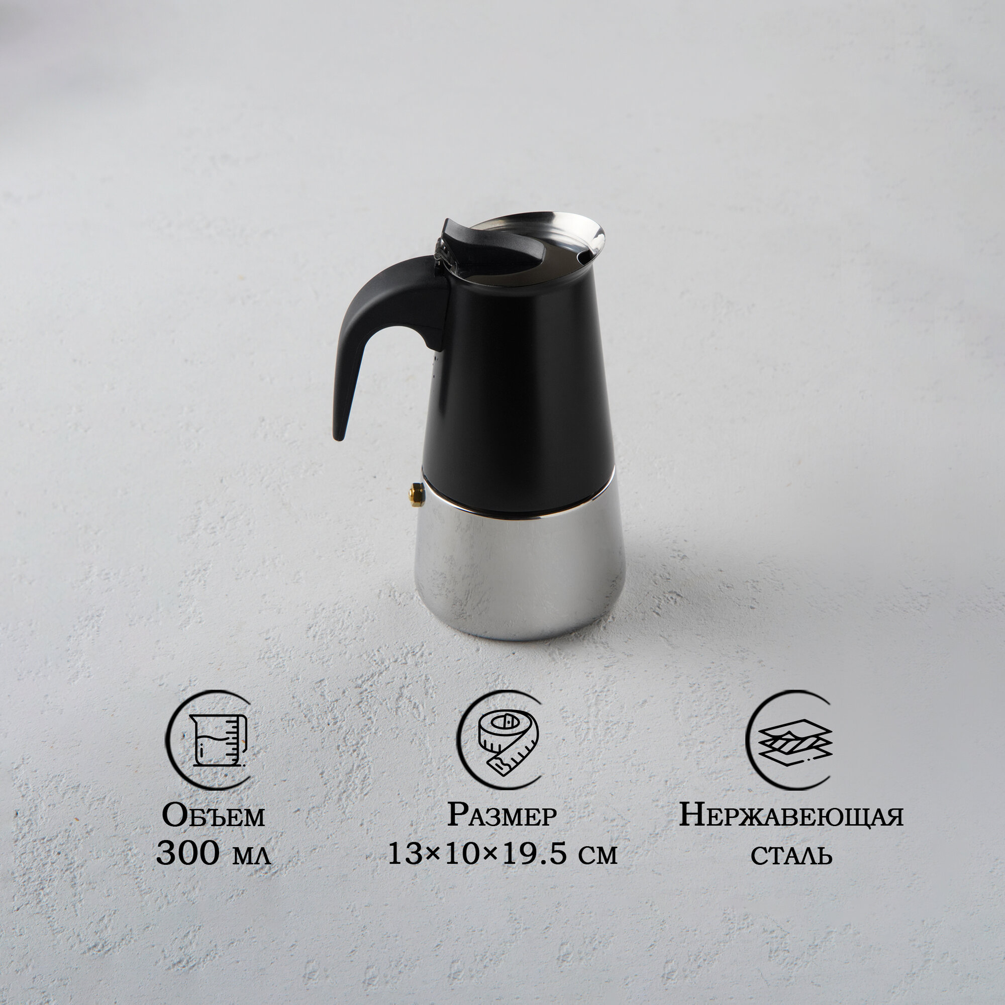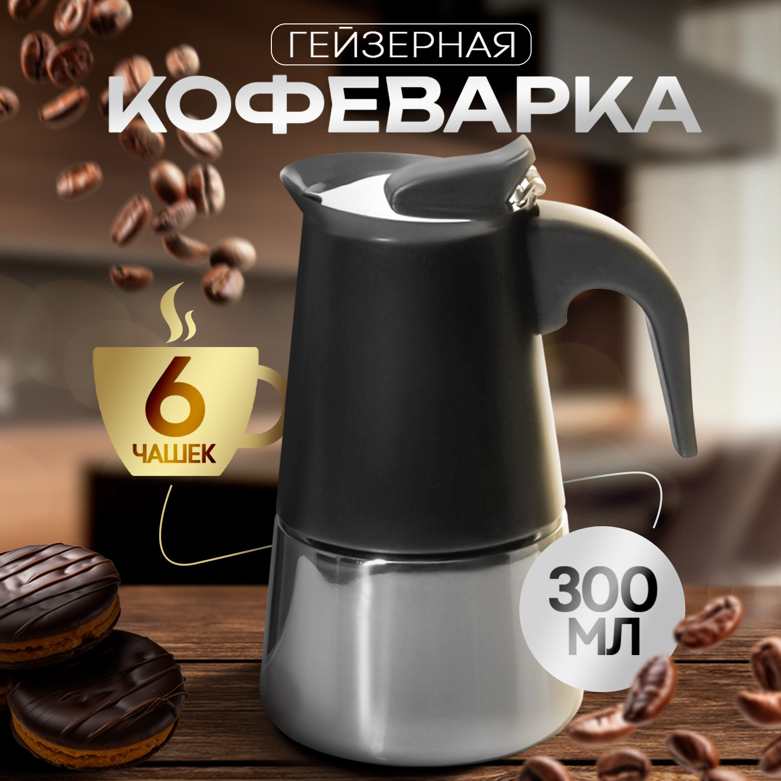 Кофеварка гейзерная Classic black, на 6 чашек, 300 мл, цвет чёрный