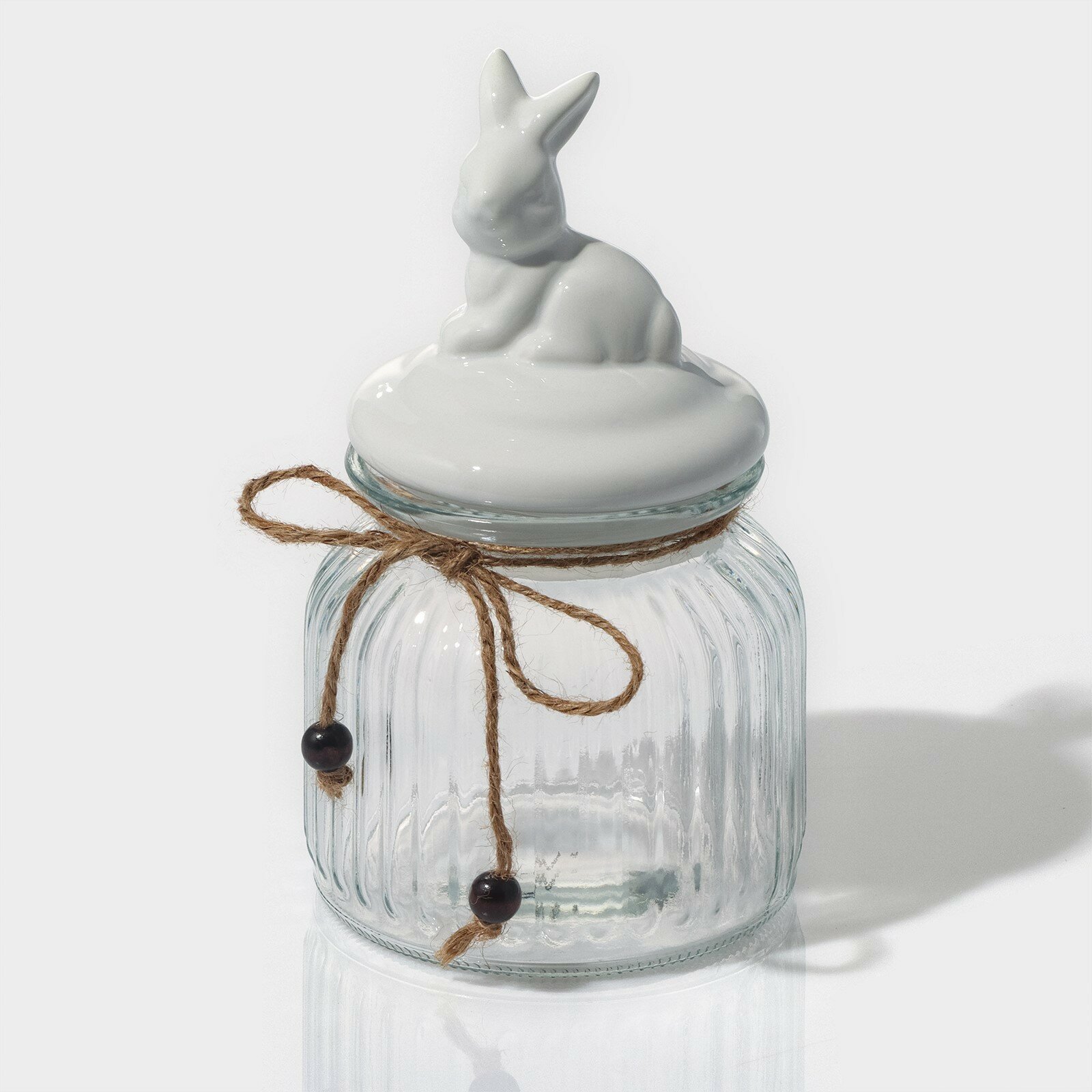 Купить Банка для сыпучих продуктов с керамической крышкой, сахарница стеклянная Доляна «Зайка» 600 мл