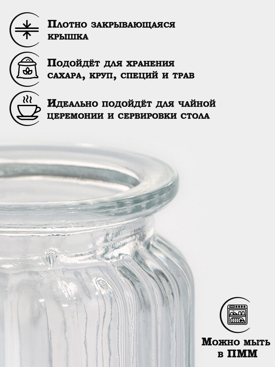 Банка для сыпучих продуктов Доляна "Овал", 190 мл, 10x6.5 см, стекло, прозрачная