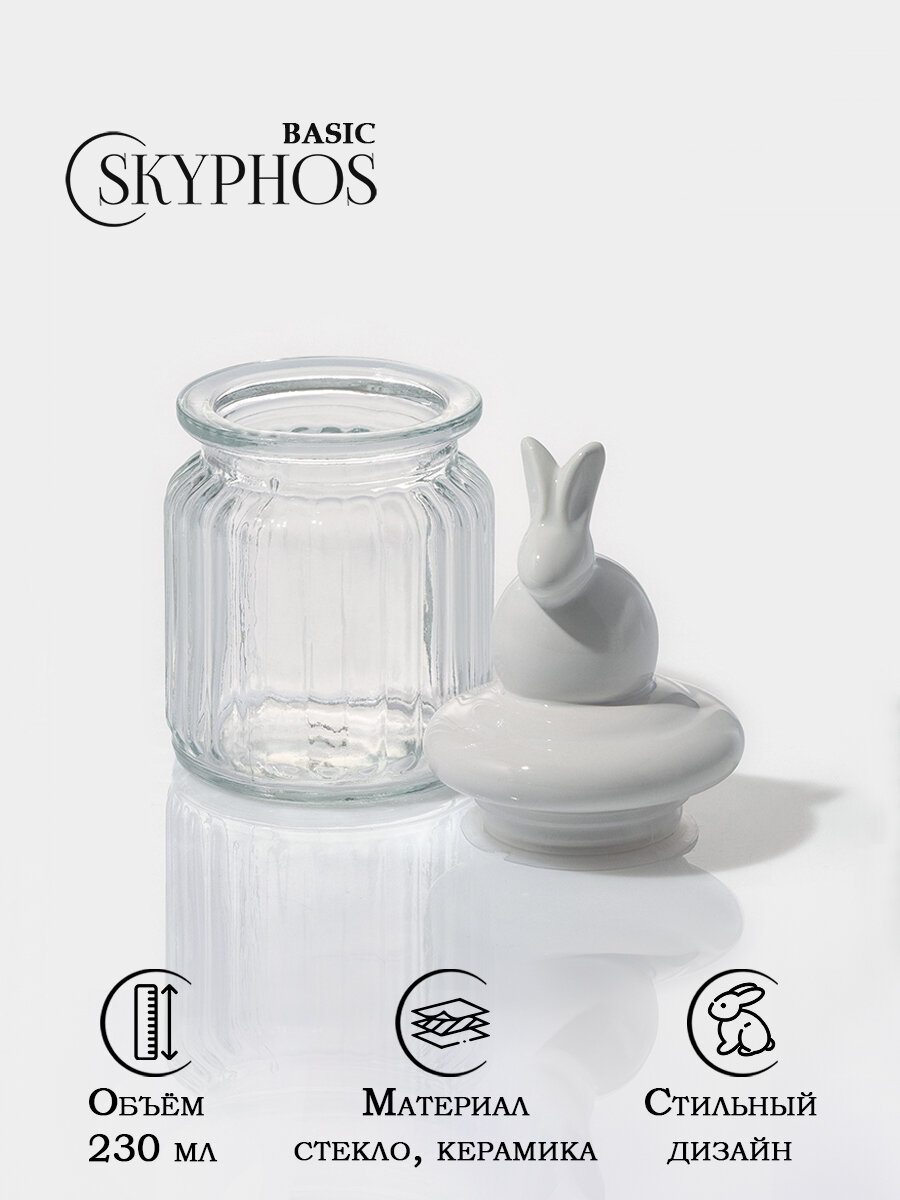 Купить Банка для сыпучих продуктов с керамической крышкой, сахарница стеклянная Доляна «Зайка» 230 мл