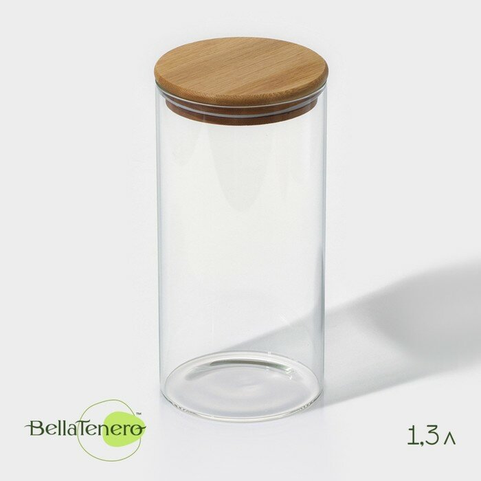 Банка стеклянная для сыпучих продуктов с бамбуковой крышкой BellaTenero Эко, 1,3 л, 10?20,5 см Bel .