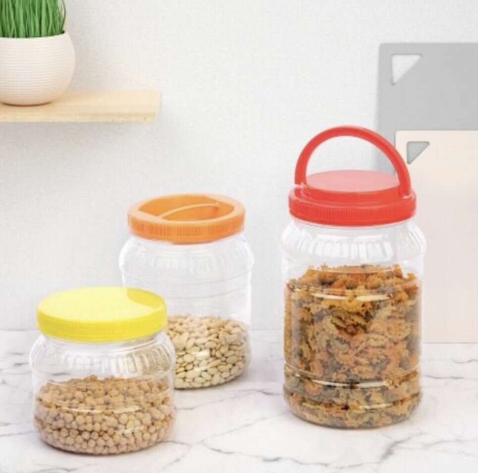 Банка для сыпучих продуктов ПЭТ Альтернатива, с крышкой и ручкой, 3 л, микс