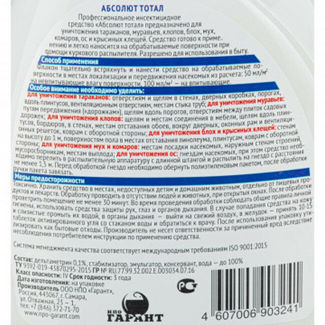 | Подробная комплектация | время наступления эффекта — от 24 до 48 часов в зависимости от вида насекомых |