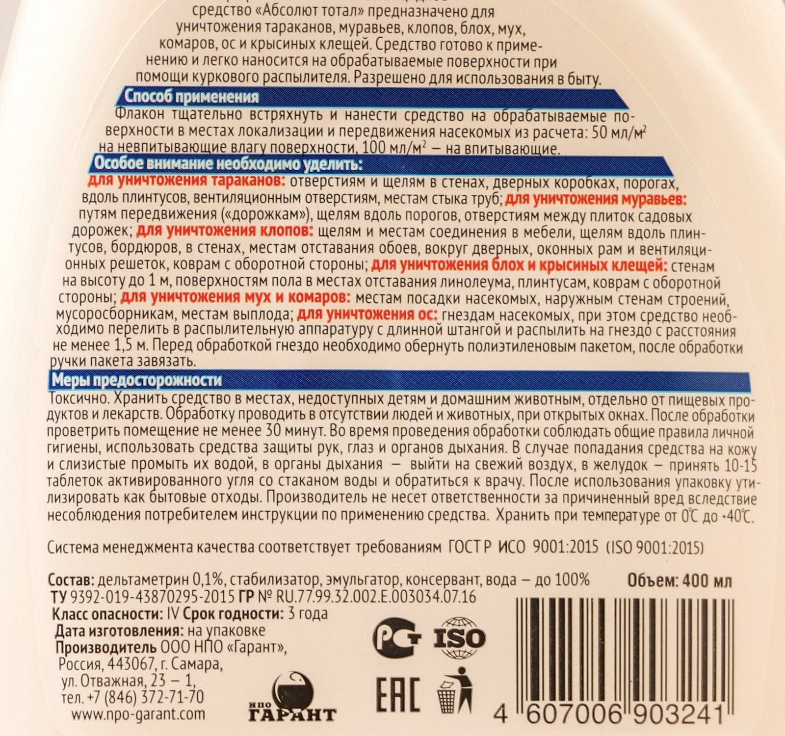 Абсолют Тотал, спрей от летающих и ползающих насекомых, 400 мл интересное: