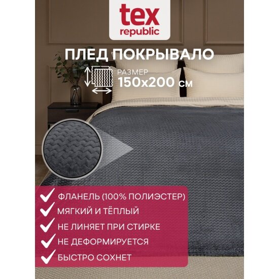Купить Плед Texrepublic Deco фланель, 150х200 темно-серый (93397)
