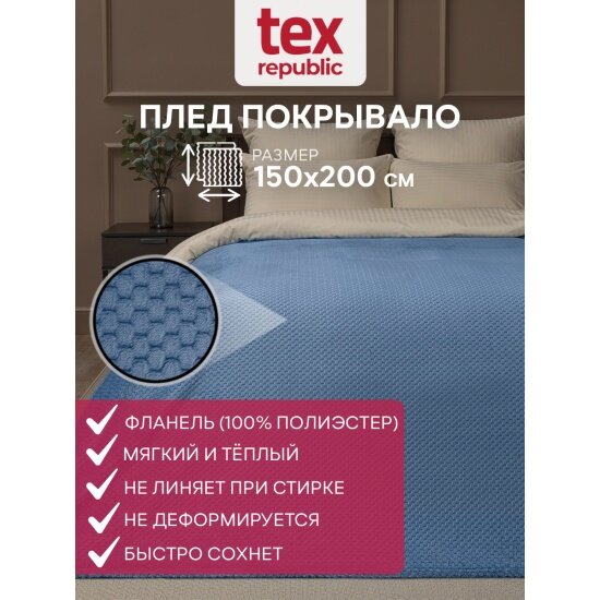Плед Texrepublic Deco фланель, 200х220 голубой (93415)