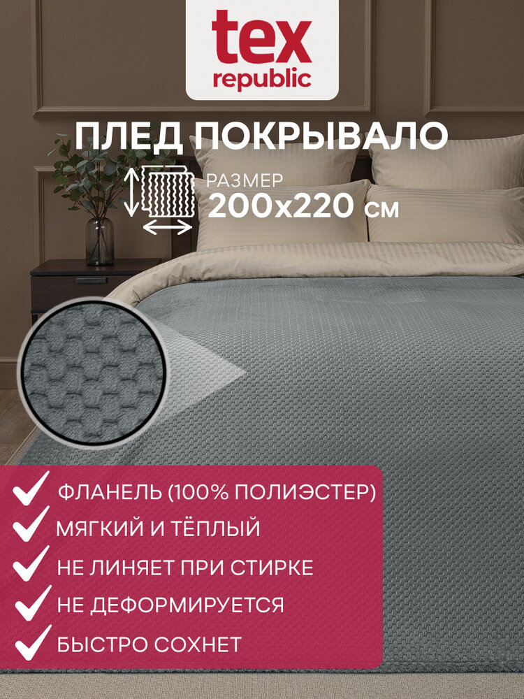 Плед Texrepublic Deco фланель, 200х220 серый (93412)