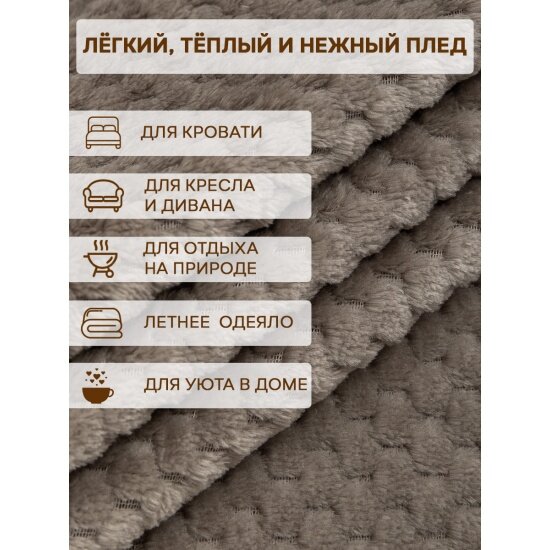 Плед Texrepublic Deco фланель, 200х220, коричневый (28885)