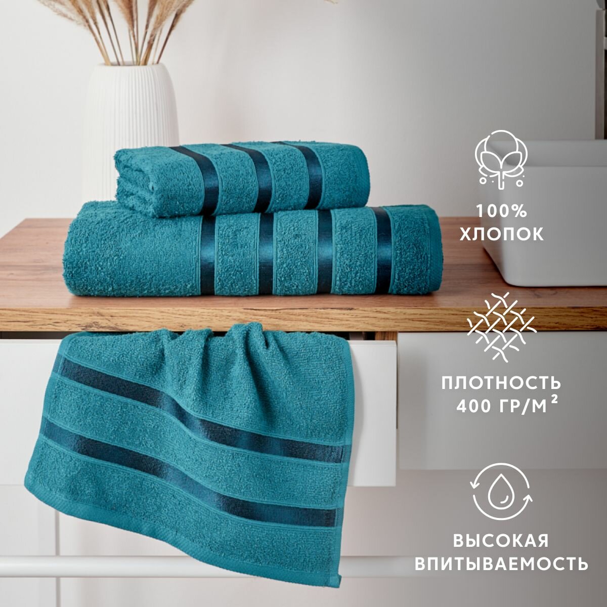 Набор полотенец махровых Diana, Авеню, 3 шт 30х50, 50х90, 70х140, 100% хлопок, Бирюзовый