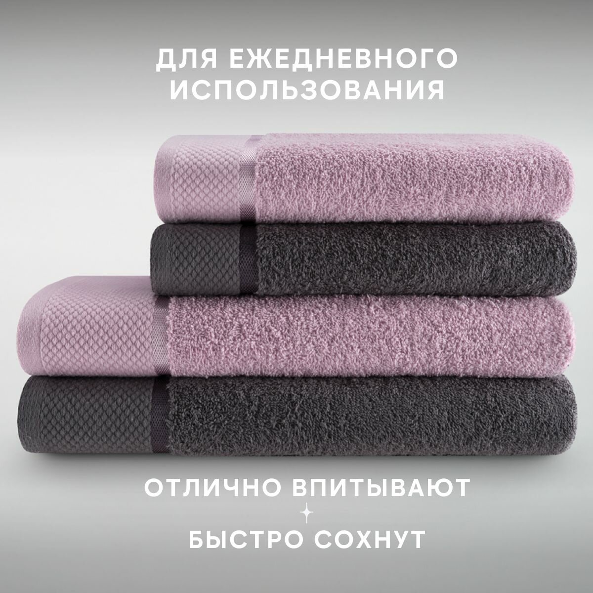 Набор полотенец махровых Diana "Авеню", 4 шт, Черный жемчуг/Туманный серый, 100% хлопок
