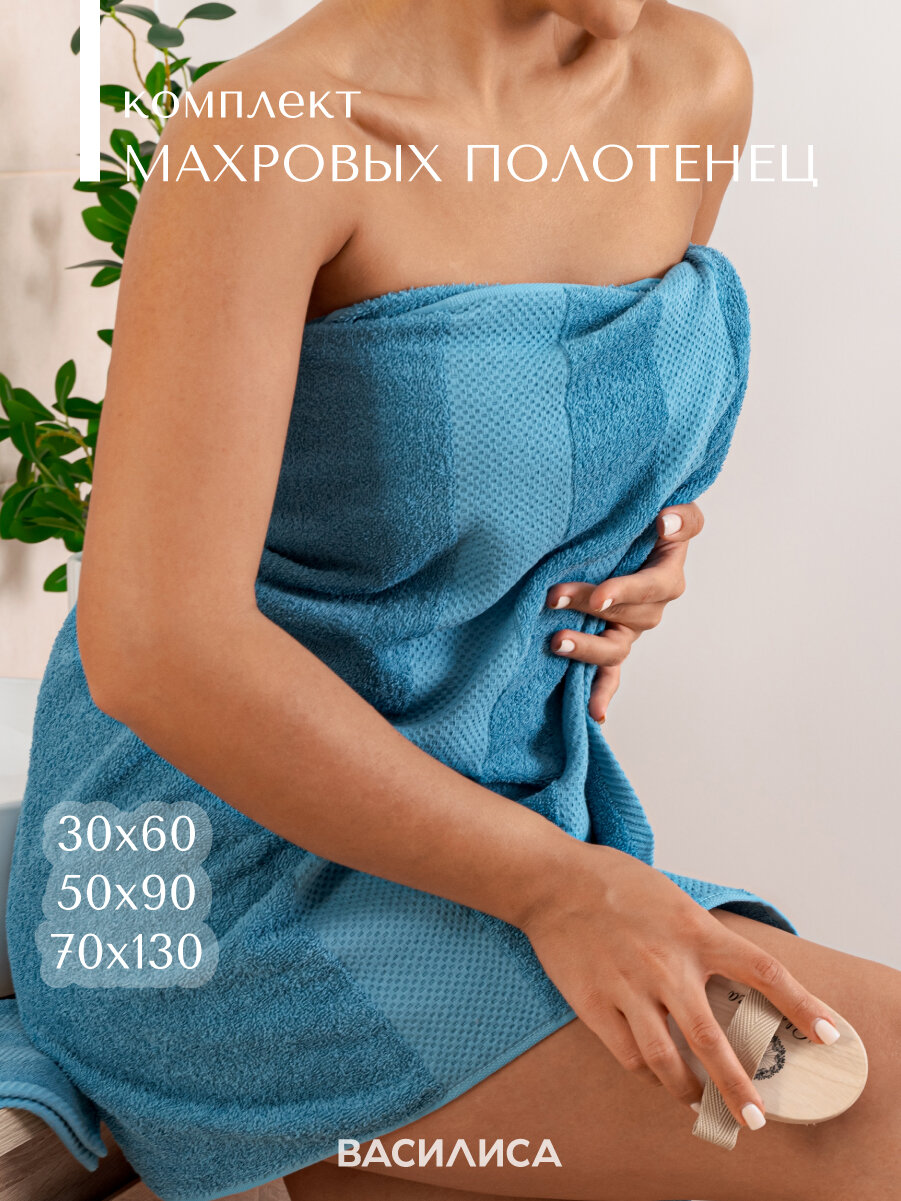 Набор махровых полотенец Конфетти 30х60, 50х90, 70х130, TILE BLUE
