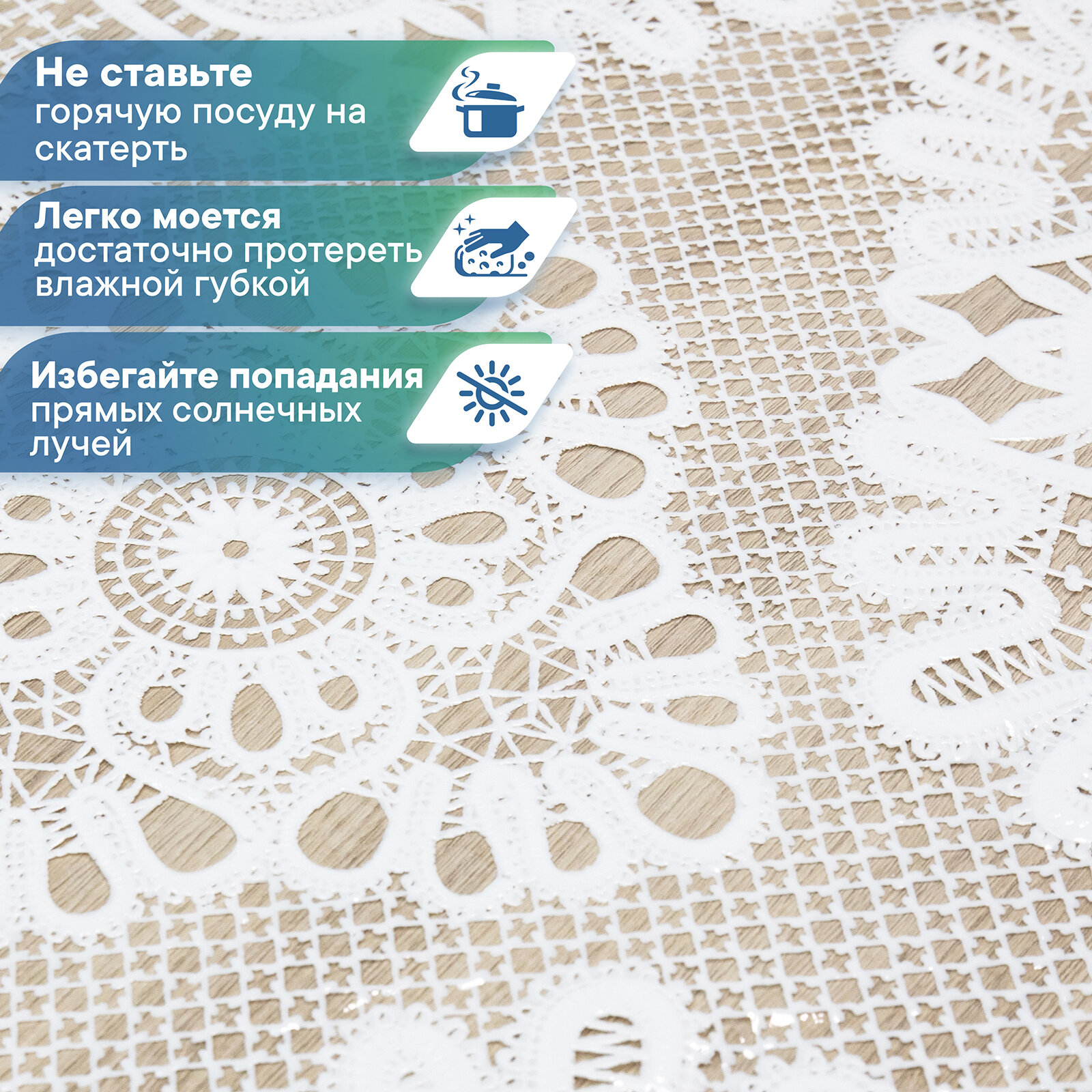 Скатерть клеенка VILINA "Элегия" прямоугольная водонепроницаемая на стол для кухни с узором кружево 110х135 см 014-white