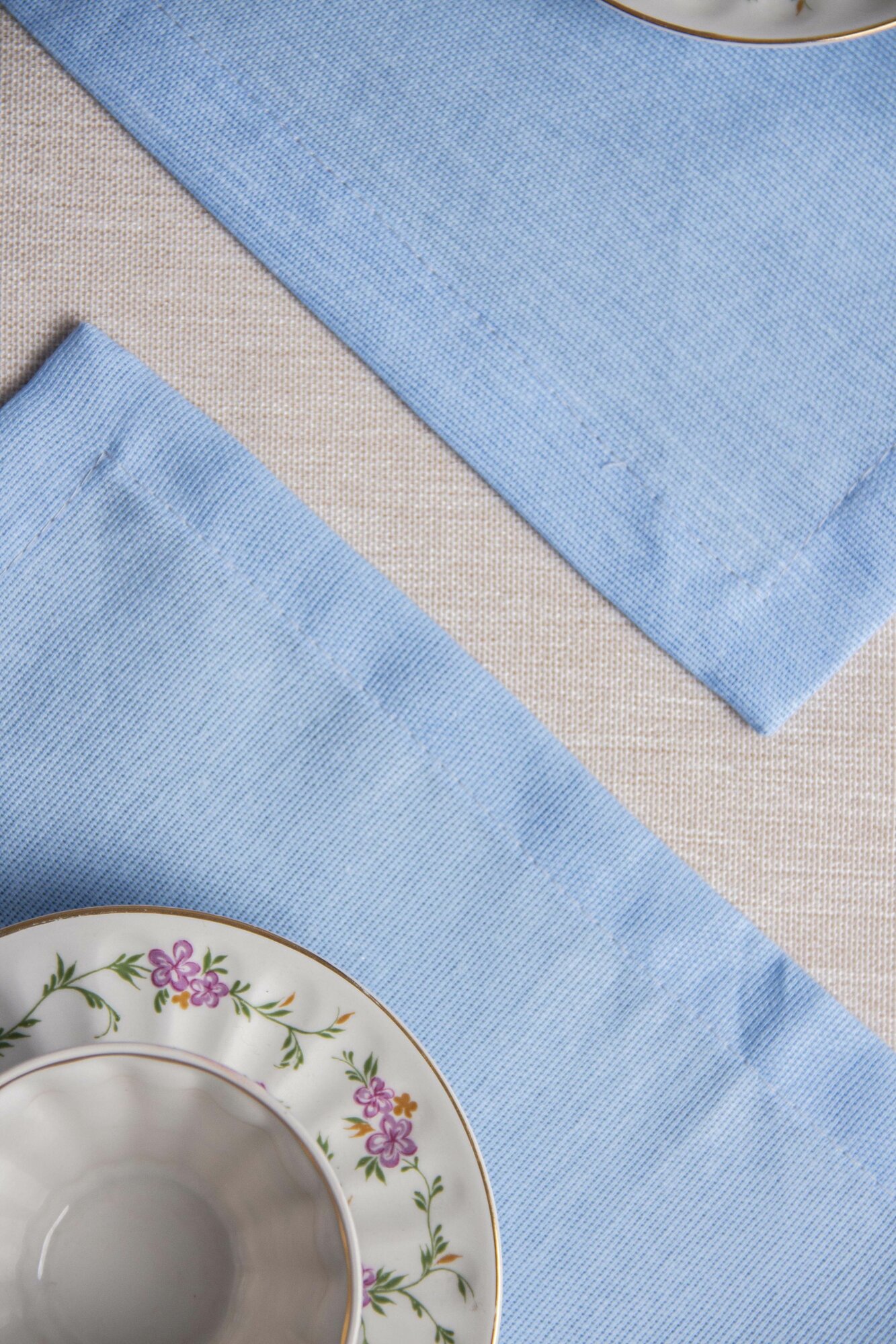 Салфетки на стол сервировочные, квадратные / Набор сервировочных тканевых салфеток для украшения стол LeoHome 40х40 см, 4 шт, голубые, хлопок 100%