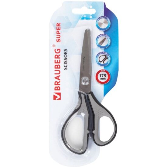 Ножницы Brauberg "SUPER", 175 мм, серо-черные, 2-х сторонняя заточка, эргономичные ручки интересное: