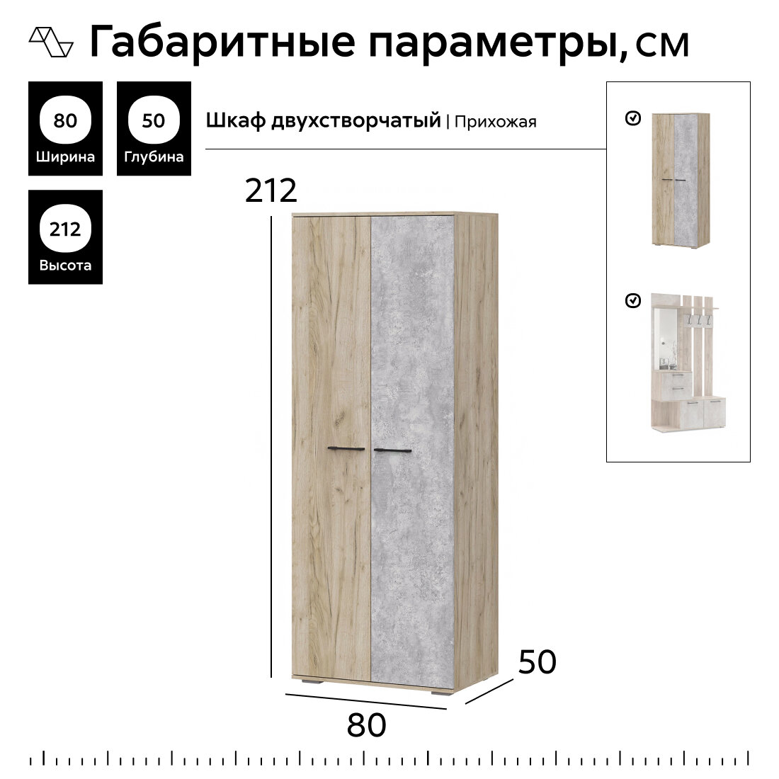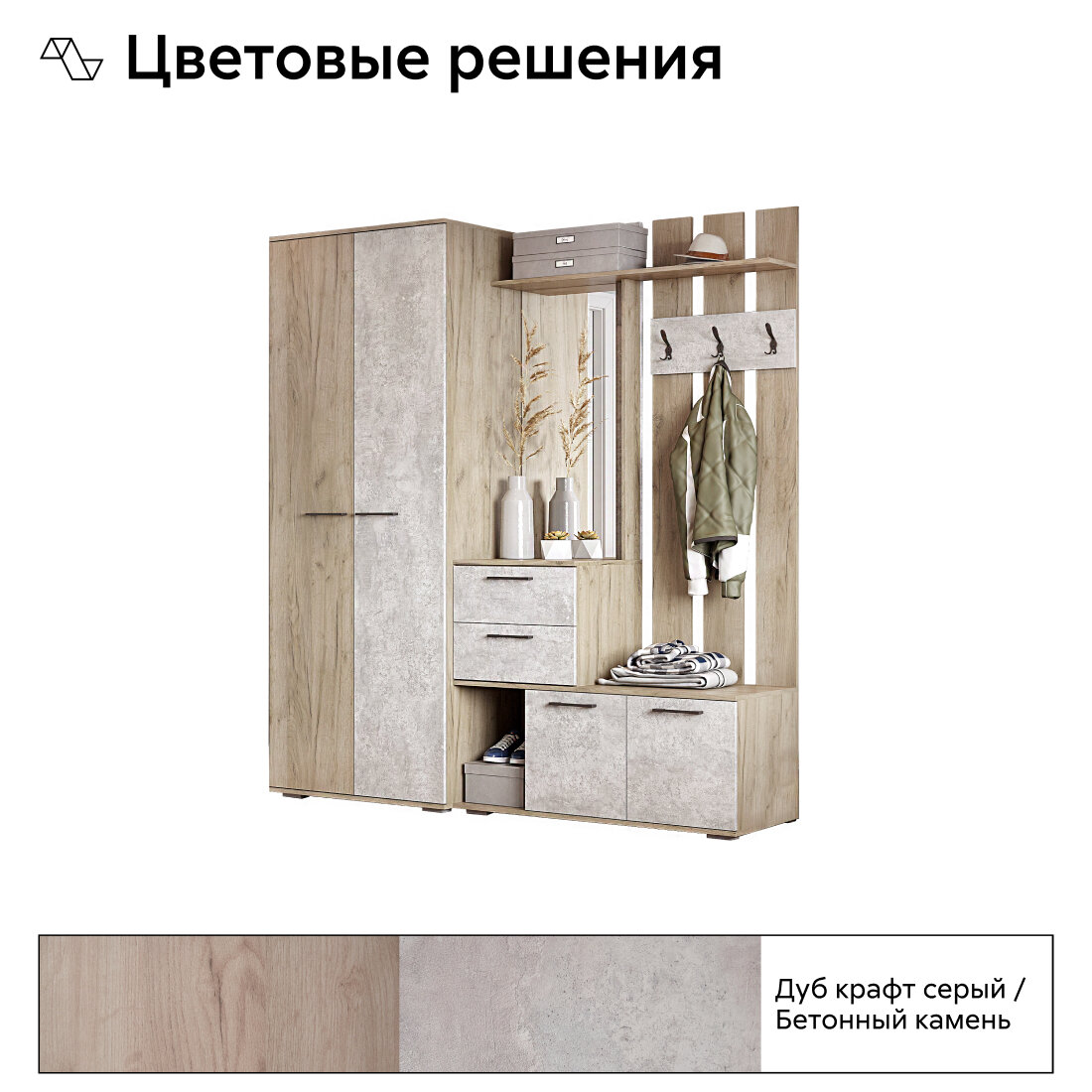 Прихожая Интерьер-Центр Бостон ВШ-2 дуб крафт серый / бетонный камень 60x50x212 см