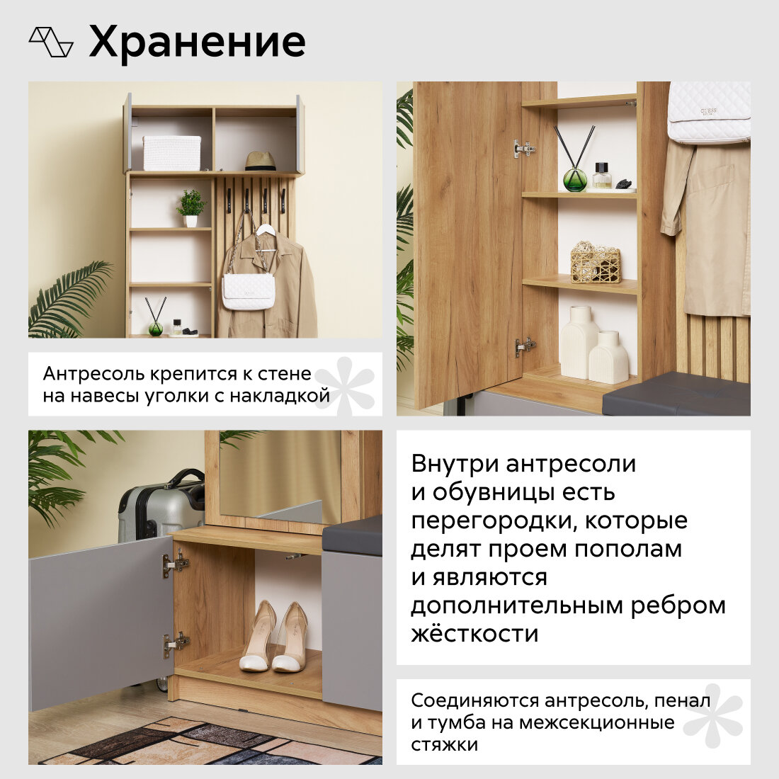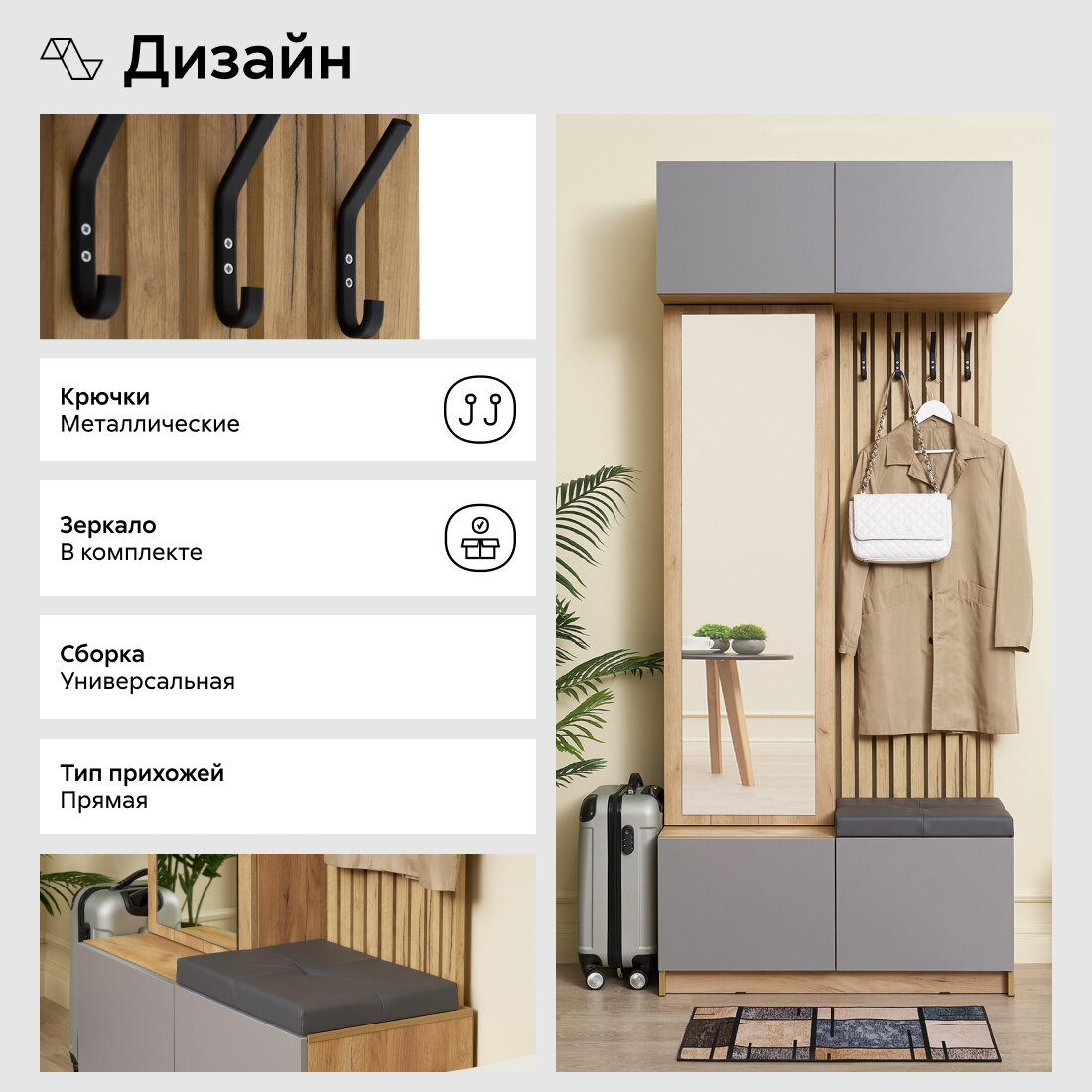 Прихожая с зеркалом Нонтон Бостон, дуб крафт золотой / серый шифер, 100 см