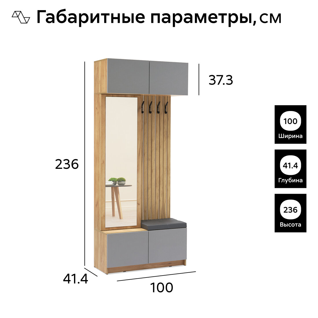 СохранитьПрихожая Нонтон Бостон дуб крафт золотой / серый шифер 100х41.4х236 см интересное: