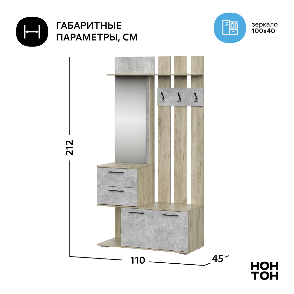 Купить Прихожая с зеркалом Нонтон Бостон дуб крафт серый / бетонный камень 110x45x212 см