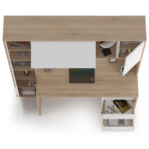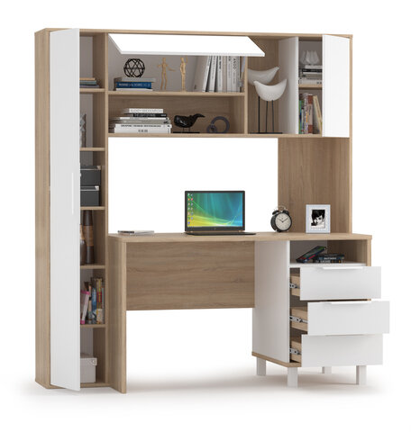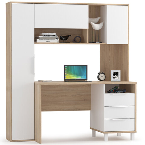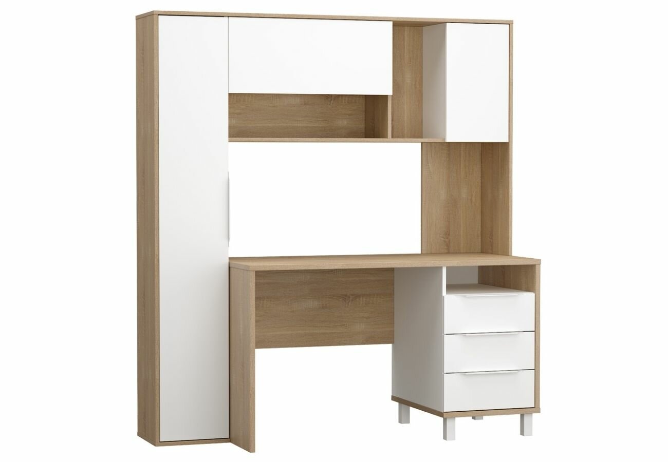 Купить Стол письменный с пеналом и надстройкой Mobi Комфорт 12.95, 162х60х180 см, 3 ящика, цвет дуб сонома/белый