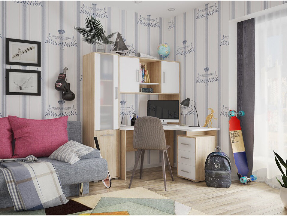 Стол компьютерный Мебельсон Лайт К4 дуб сонома/белый