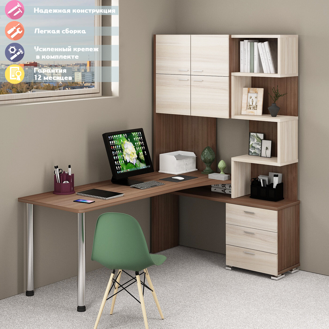 Стол компьютерный Мэрдэс СР-500М/160 Ш-ПРАВ Шамони, с надстройкой, угловой, 130х160х199 см
